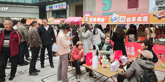 On December 11, 2025, Chongqing Robinsons Galleria, in collaboration with the Qixinggang Sub-district Office, hosted a coffee market. The event was themed “Sweet Qixinggang: Discovering Flavors in the Alleys.”With participation from twelve coffee brands, a dessert brand, two handicraft brands, and a roast duck brand, the market attracted many citizens for tasting. A live band performed on-site, energizing the entire activity.